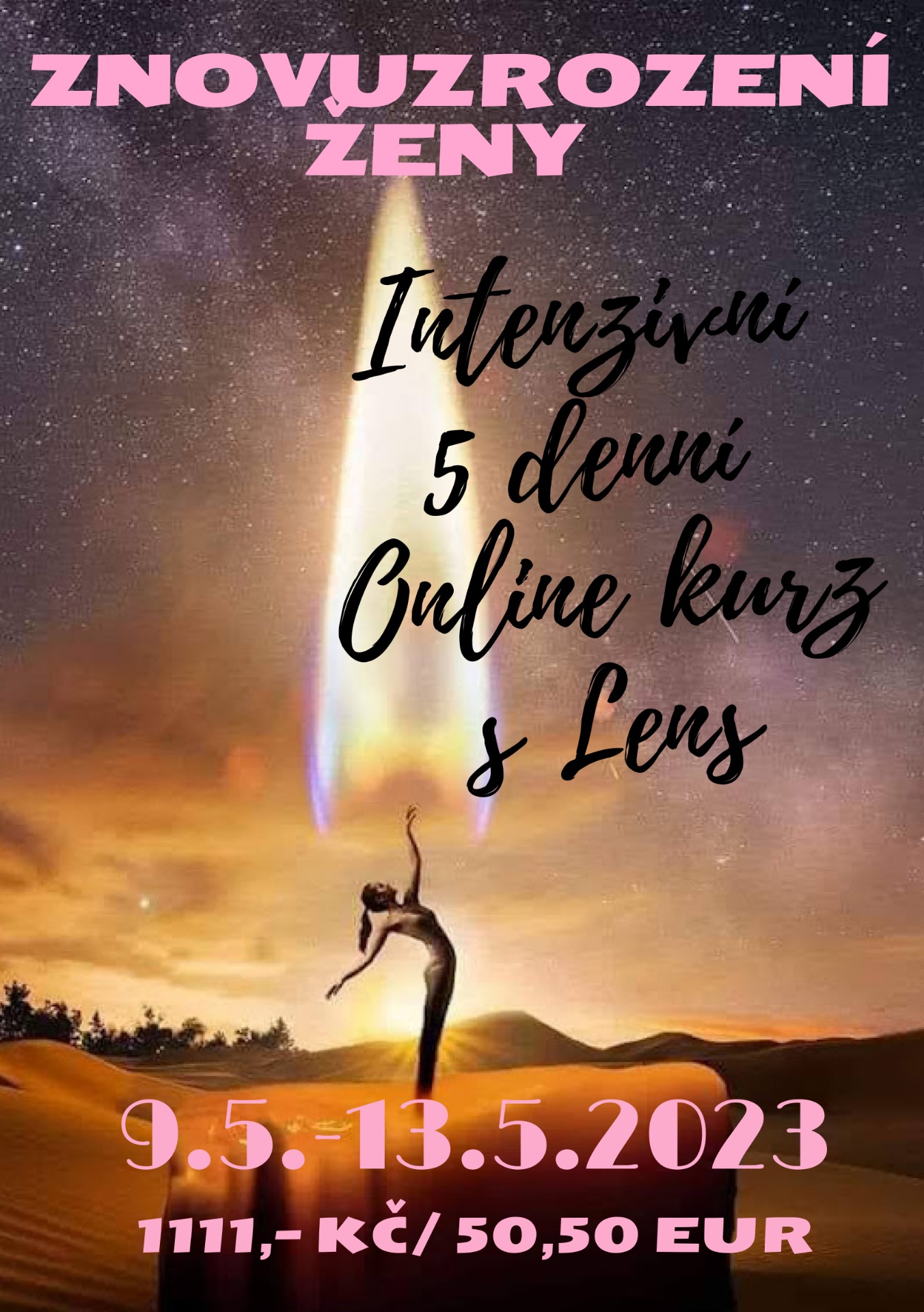 - Jedná se o 4 denní intenzivní kurz, jehož cílem je otevřít v sobě opět ženskou energii, objevit veškeré roviny své vnitřní ženy a znovuzrodit se tak jako žena svobodná, důvěřující si, přijímající, odhodlaná, milující sebe sama a hlavně mající se na 1. místě