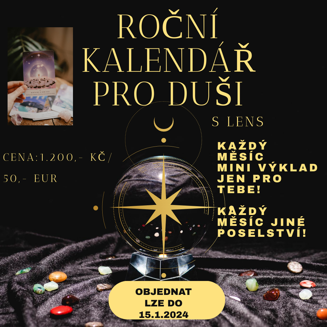 Přátelé, představuji vám ROČNÍ KALENDÁŘ PRO DUŠI, který skrývá každý měsíc jednotlivá poselství jen a jen pro vás. Bude vás provázet celým vašim rokem 2024 a bude vám nápomocný na vaší cestě, bude milým společníkem, vrbou, rádcem i pomocníkem :)